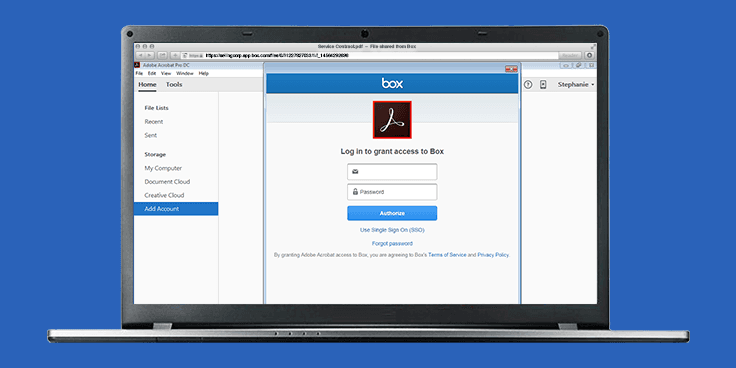 Set Box as your Default Cloud Service in Adobe: When working from a computer or an iOS device, users will now be able to have all of their work automatically saved to Box, whether creating a new project or editing an existing one. Using Acrobat DC and Acrobat Reader on the desktop, iPhone or iPad, you can choose Box as your default cloud service, ensuring that all of your most valuable content is centralized and secured on Box. Available next month, the new integration from Adobe adds a new layer of security to PDFs by benefiting from world-class security and control from Box, including features like granular permissions, watermarking, password protected content and access stats.