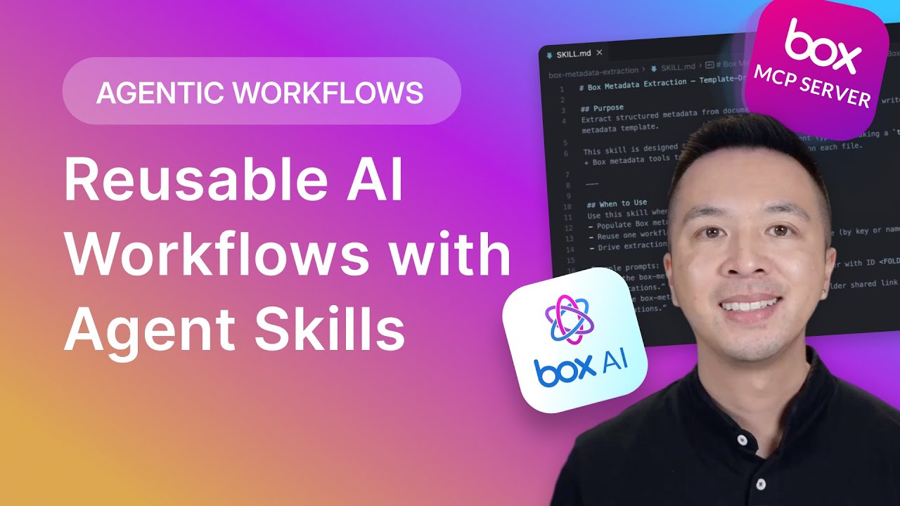 Instead of encoding a workflow in a long prompt or repeating instructions across projects, an Agent Skill packages a capability — such as “extract metadata from Box files and write it back” — into a reusable definition (SKILL.md) that can be installed into an agent environment.