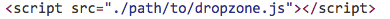 Step 1: Include the standalone Dropzone.js Javascript file in your project. This is the only code you will need to for Dropzone to work in your project but it will be missing the CSS styling you see above. If you would like to use Dropzone's styles a starting point go ahead and add both the Javascript and CSS files to your project. These files live here in the Dropzone project dist folder.